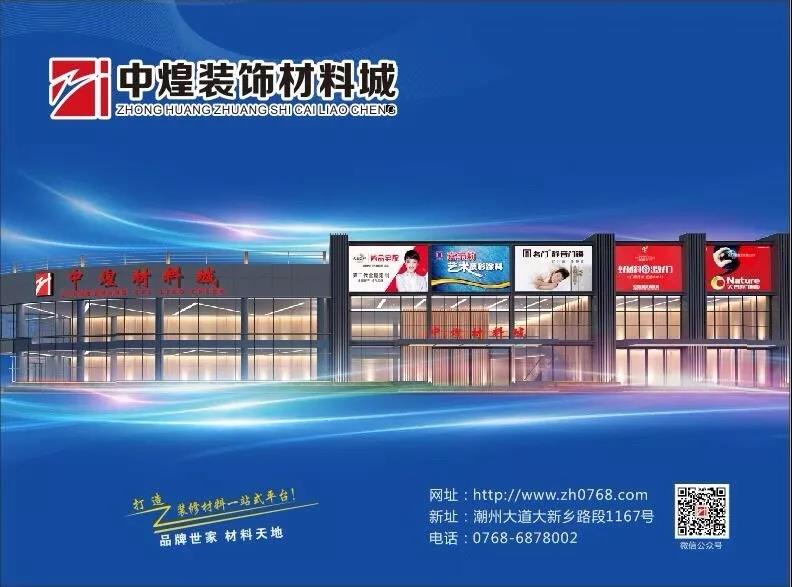 潮州市中煌建材有限公司成立于1989年, 是目前粤东规模较大,品种较齐的装饰材料一站式家居超市。主要经营:尚品宅配、大自然木地板、嘉宝莉涂料、潮绣、御秀墙布、盼盼门业、名门五金以及合板、硅钙板、铝单板等综合基材装饰材料。